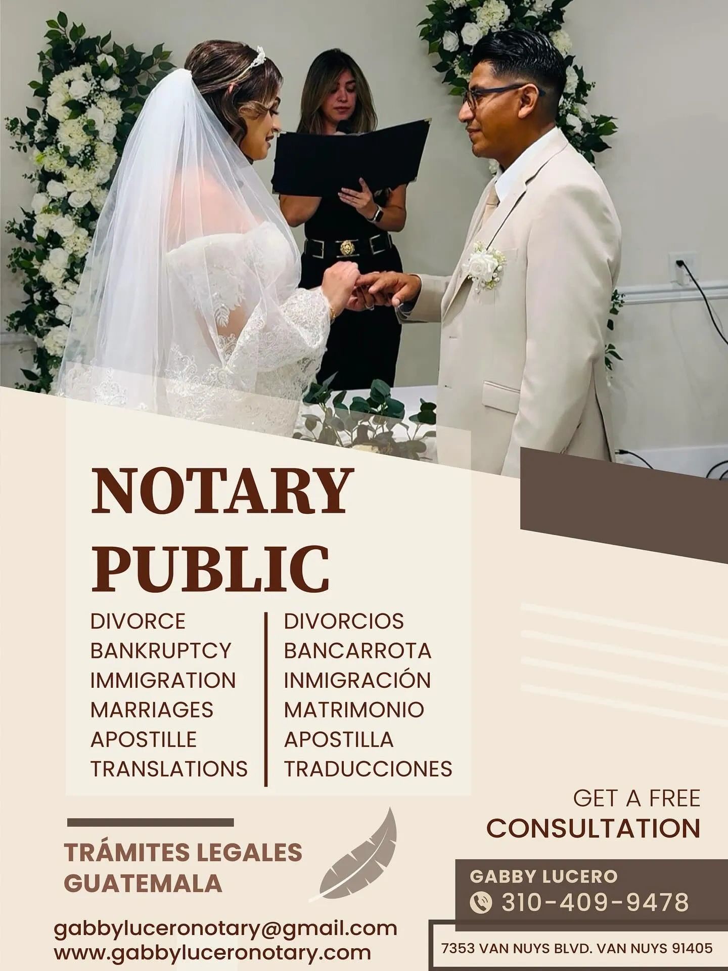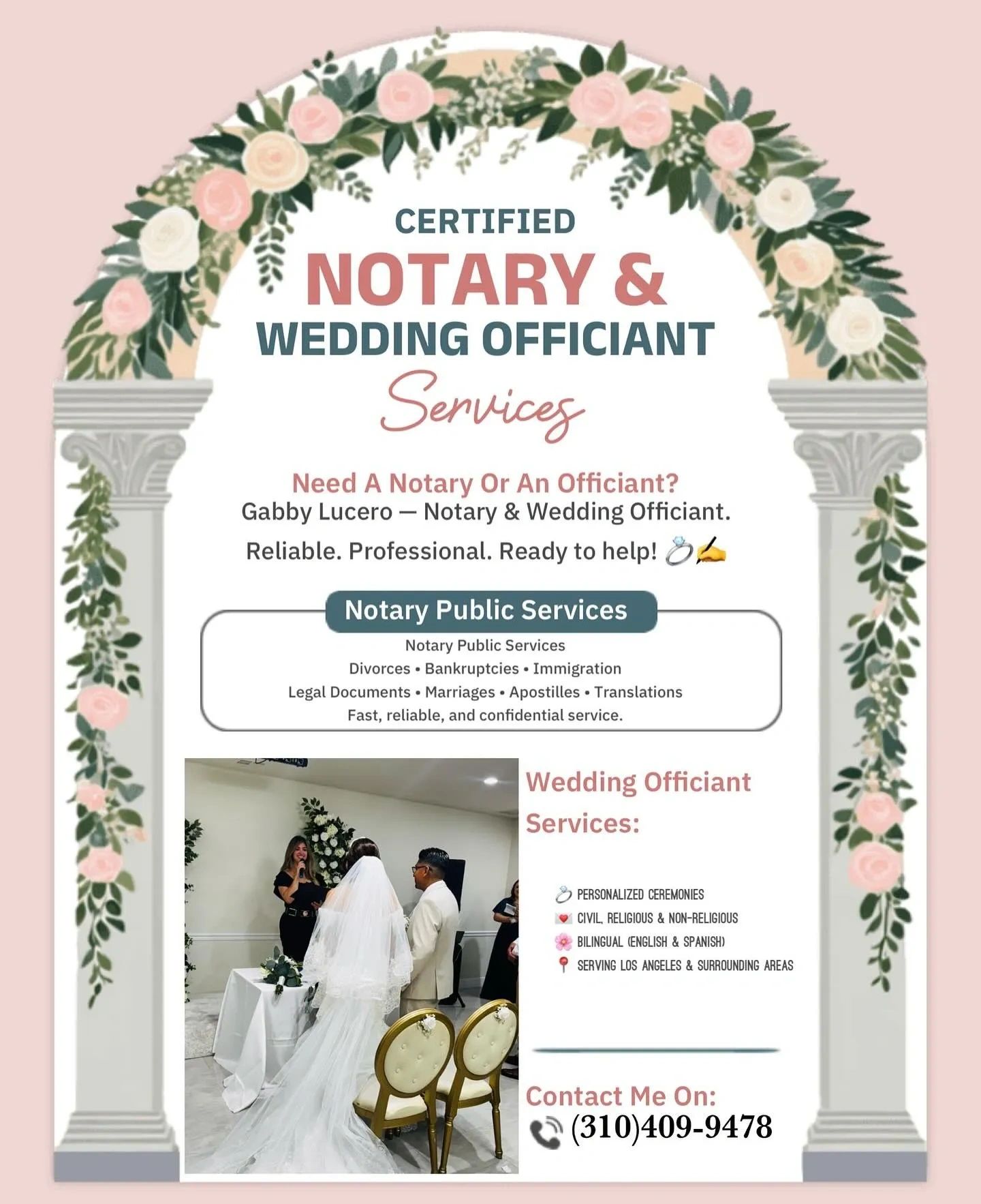 I am a certified Notary Public in the state of California. I'm also a Wedding Officiant, Process Server and certified translator English and Spanish